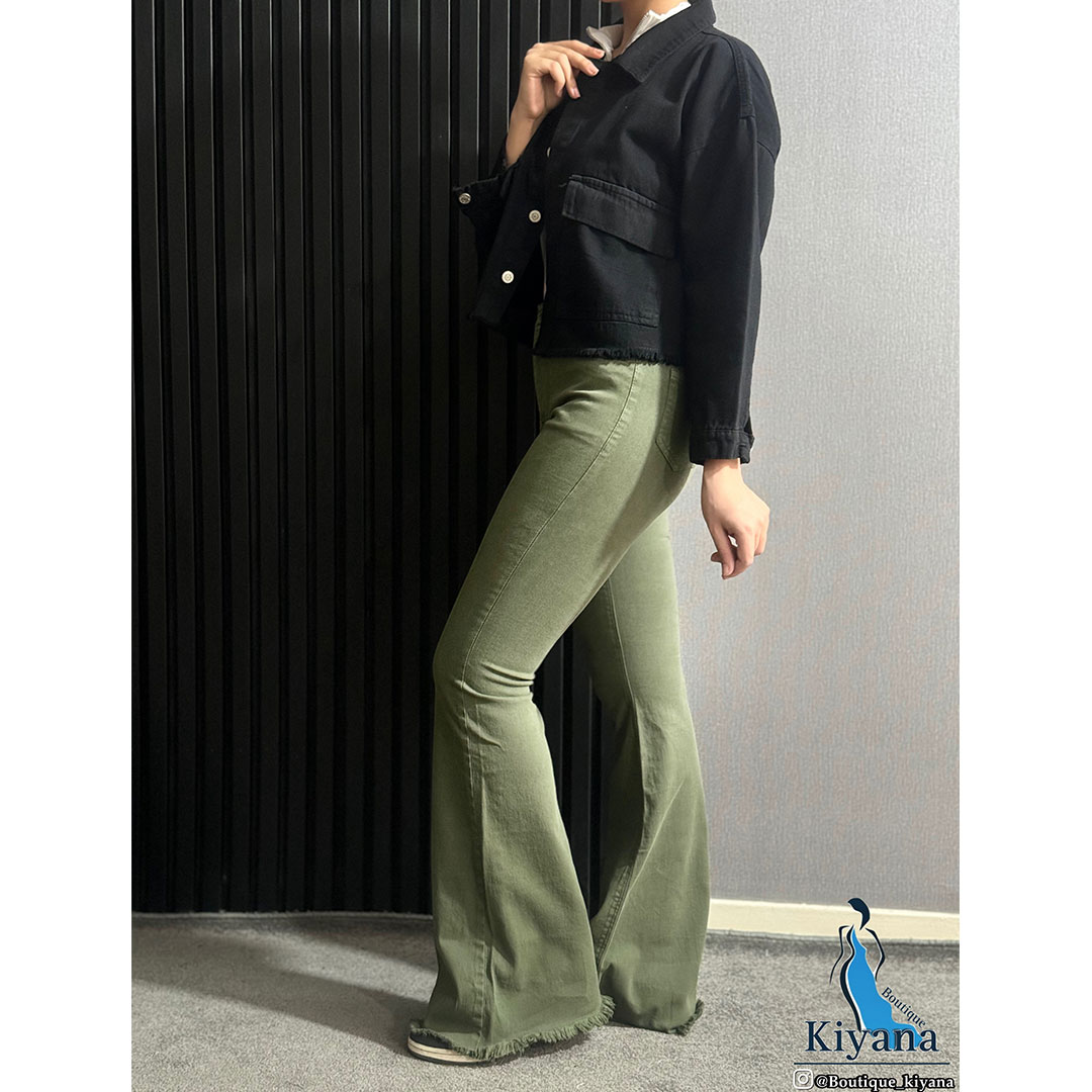 شلوار بوتکات پایین ریش سبز یشمی (1700)