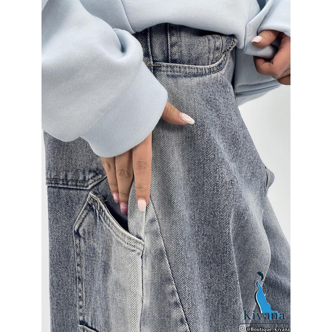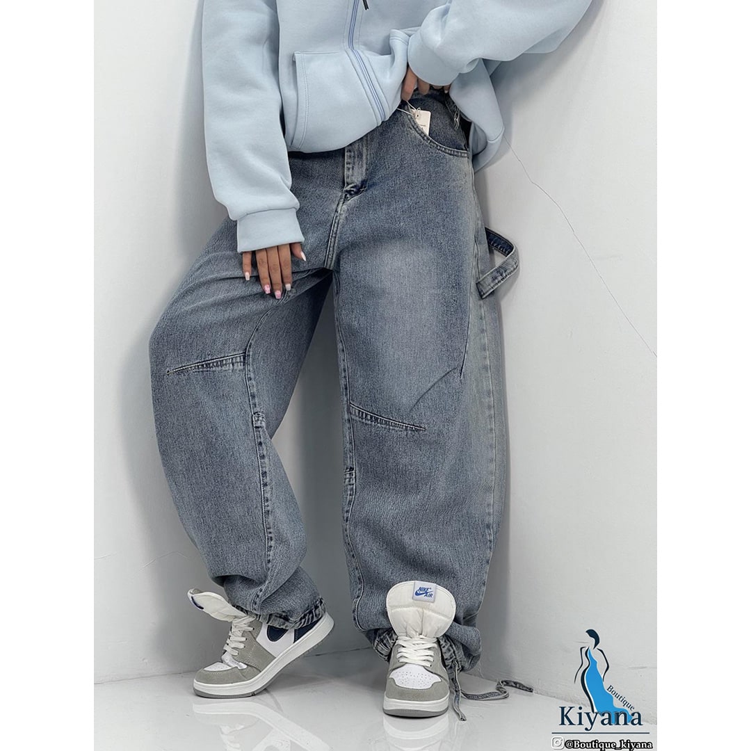 شلوار جین بالنی مکس / کارپنتری تینت آبی سنگ خشک (1727)