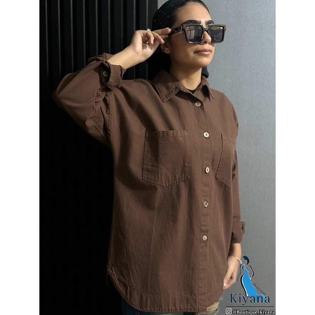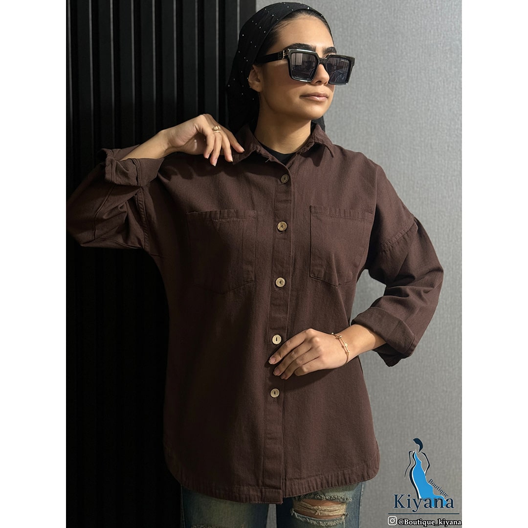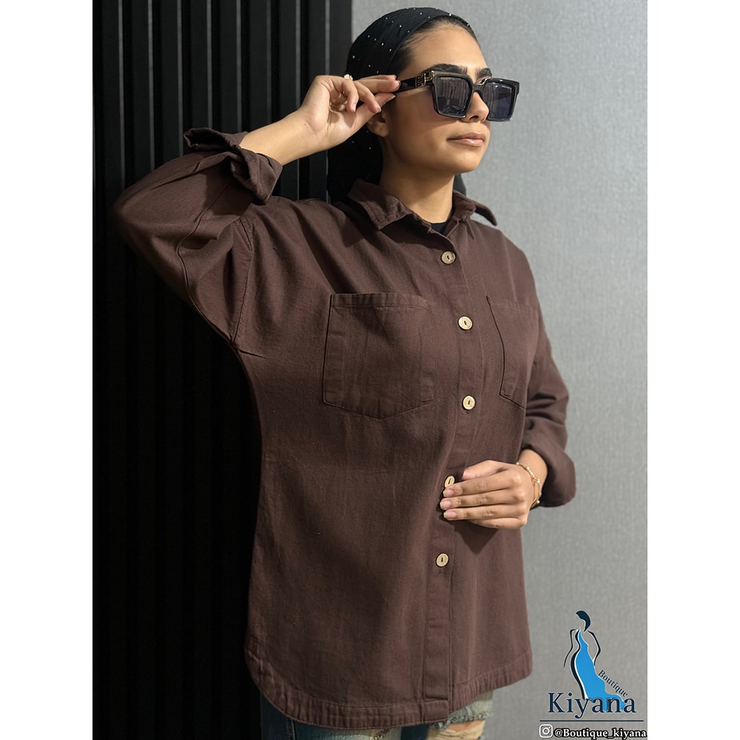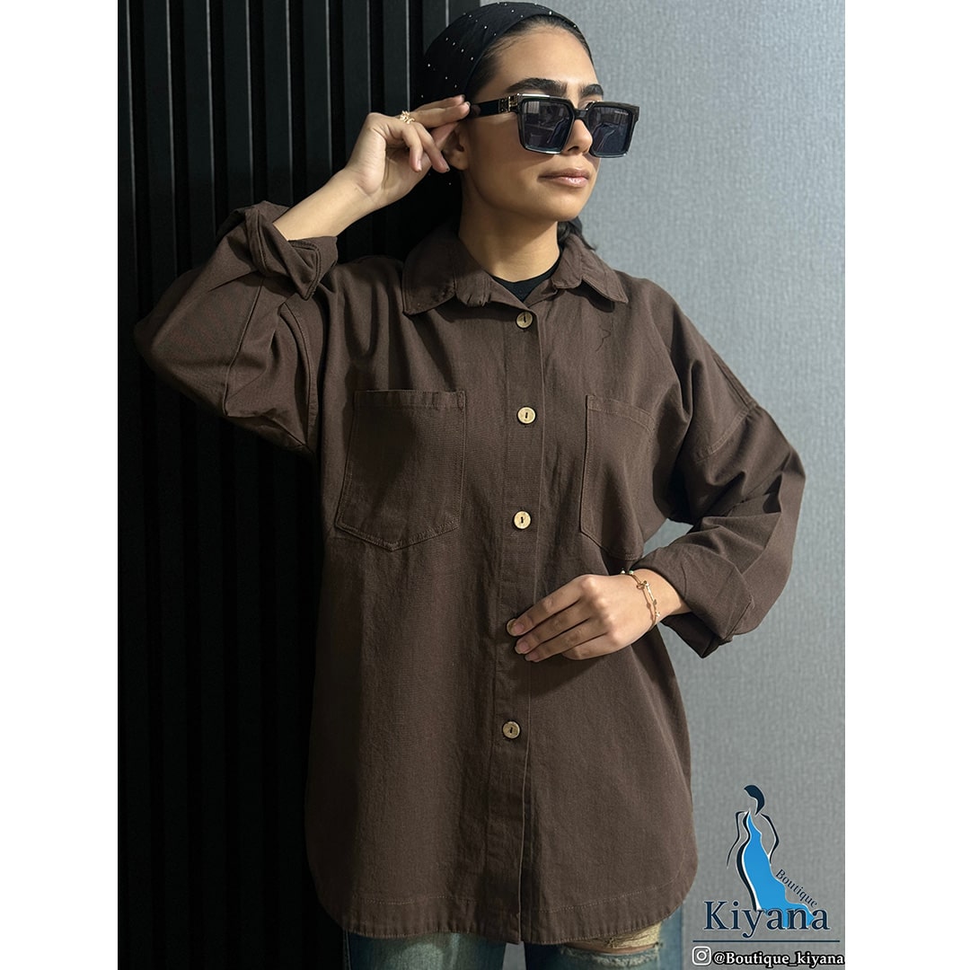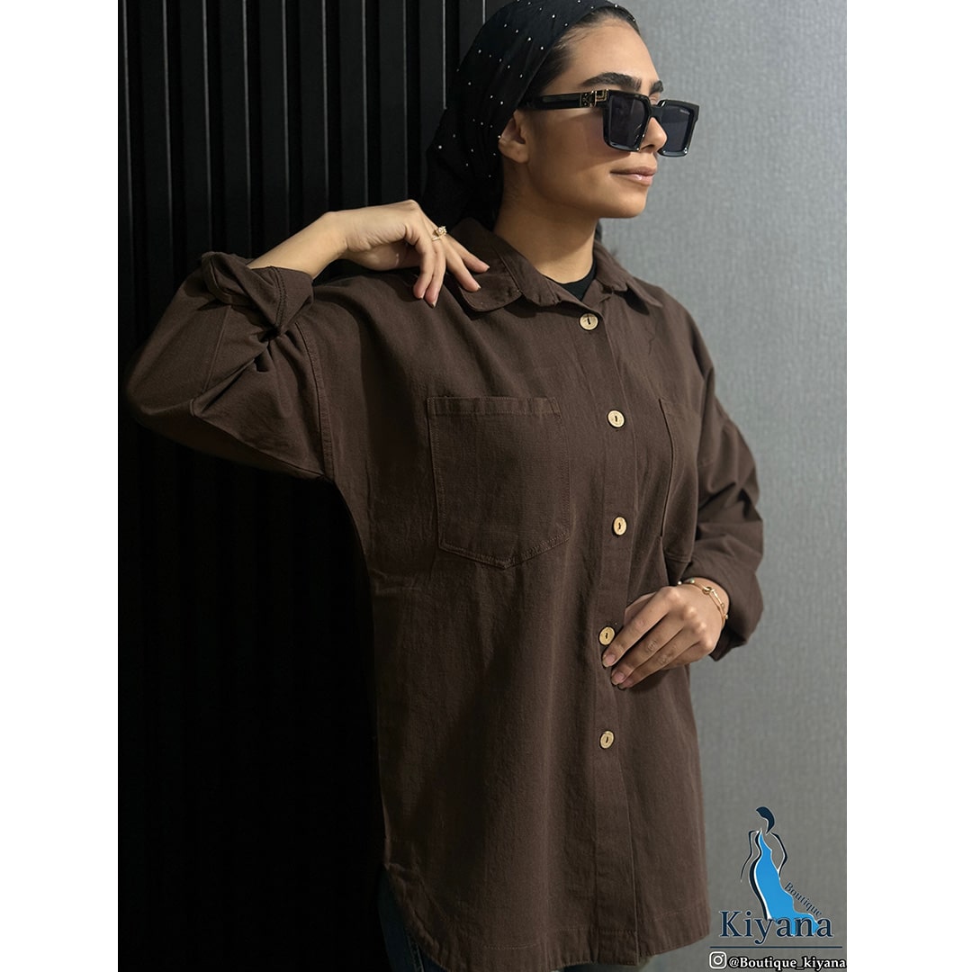 شومیز کتان ترک پاییزه / دکمه چوبی (1738)