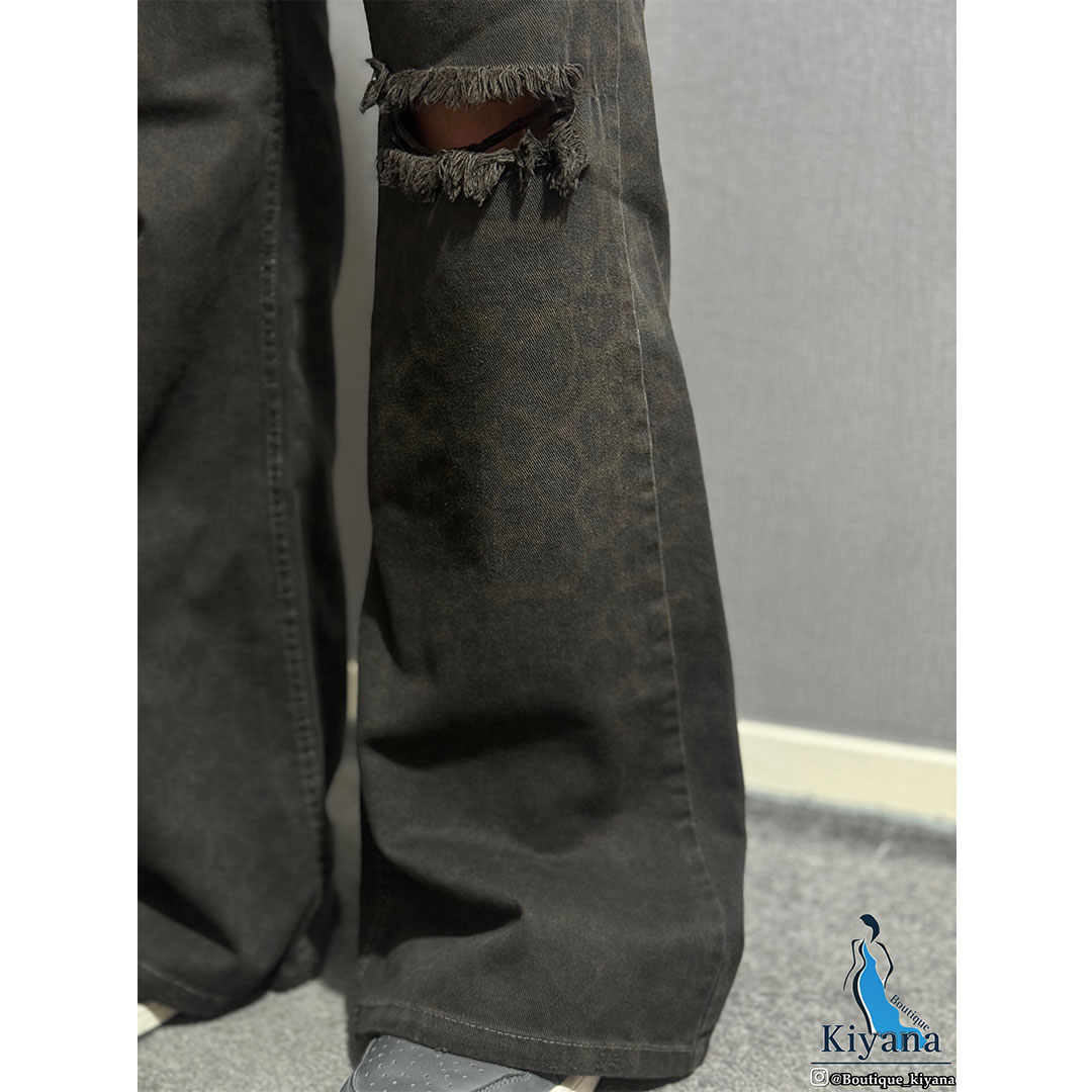 شلوار فلر بگ کتان : چریکی زانو زاپ (1809)