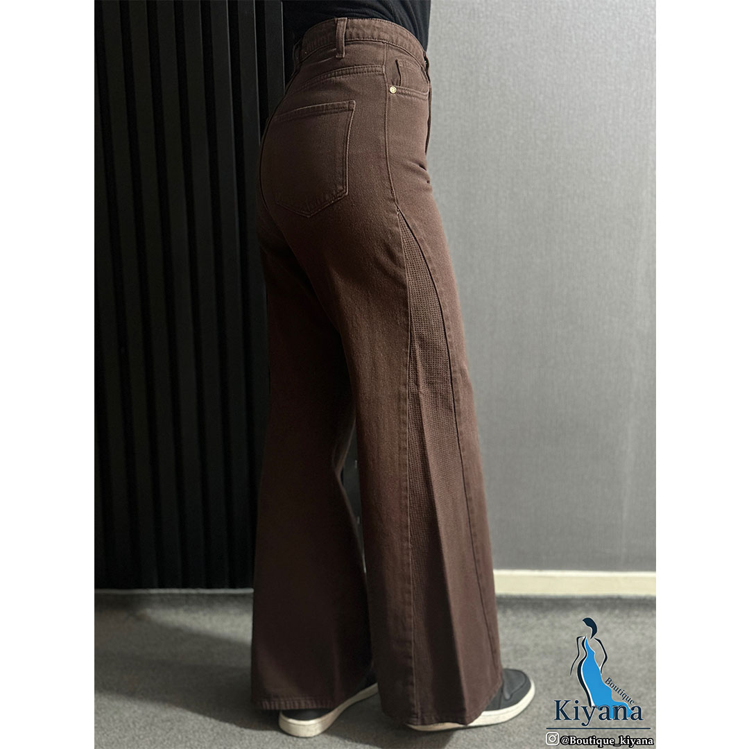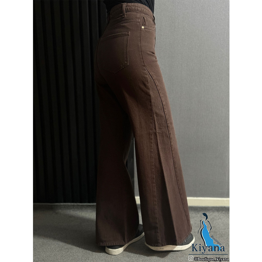 شلوار فلر بگ کتان تیکه خور رنگ قهوه ای (1811)